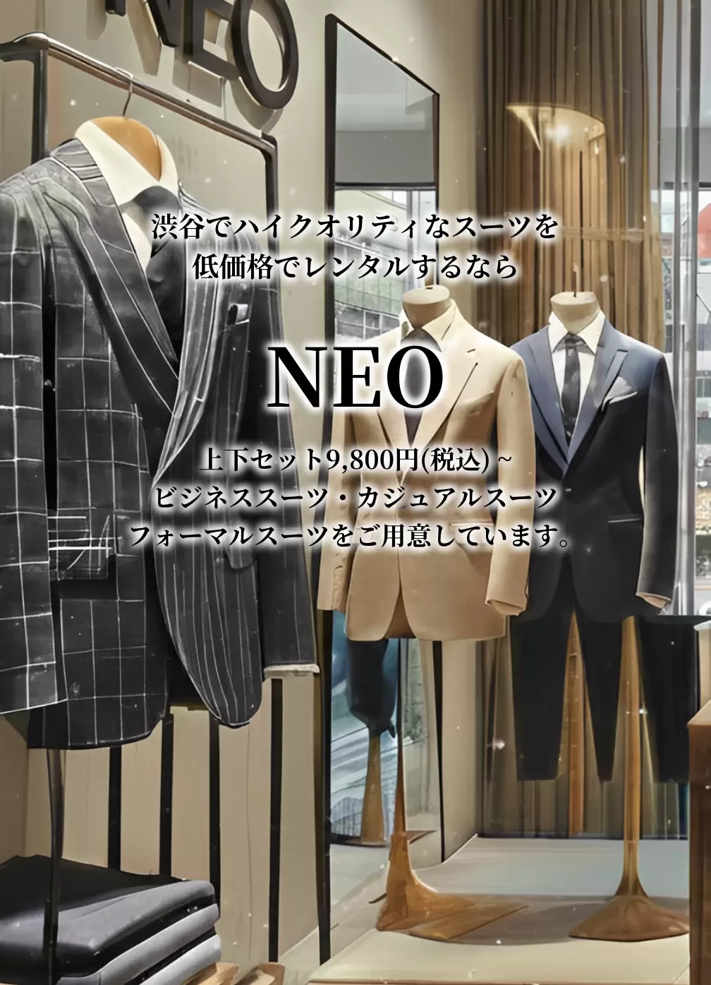 低価格で高品質なスーツがレンタルできるNEOが解決します!